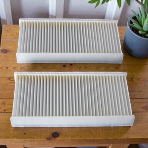 Spre deosebire de filtrele premium (cu carbon activ), filtrul standard este fabricat de obicei dintr-un material nețesut sintetic sau dintr-o hârtie specială densă, pliată sub formă de acordeon.